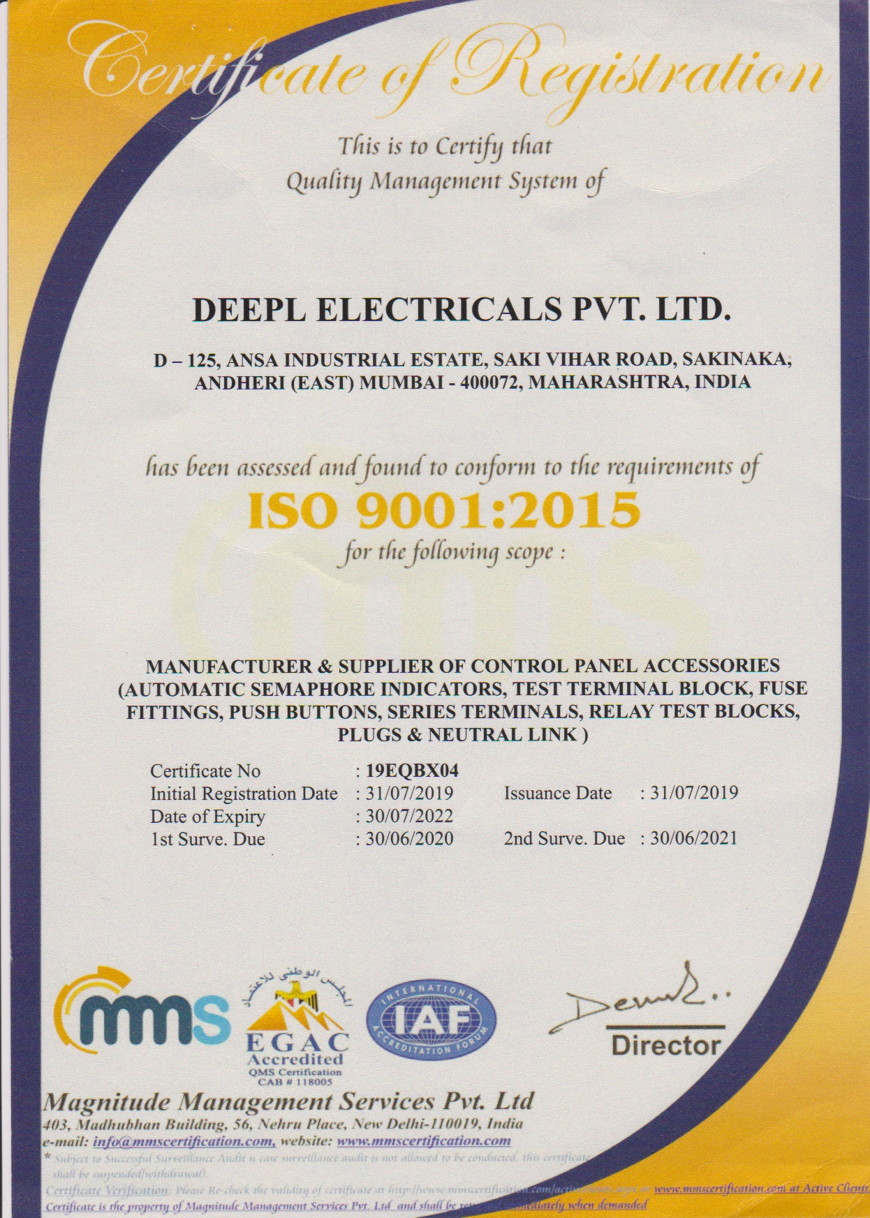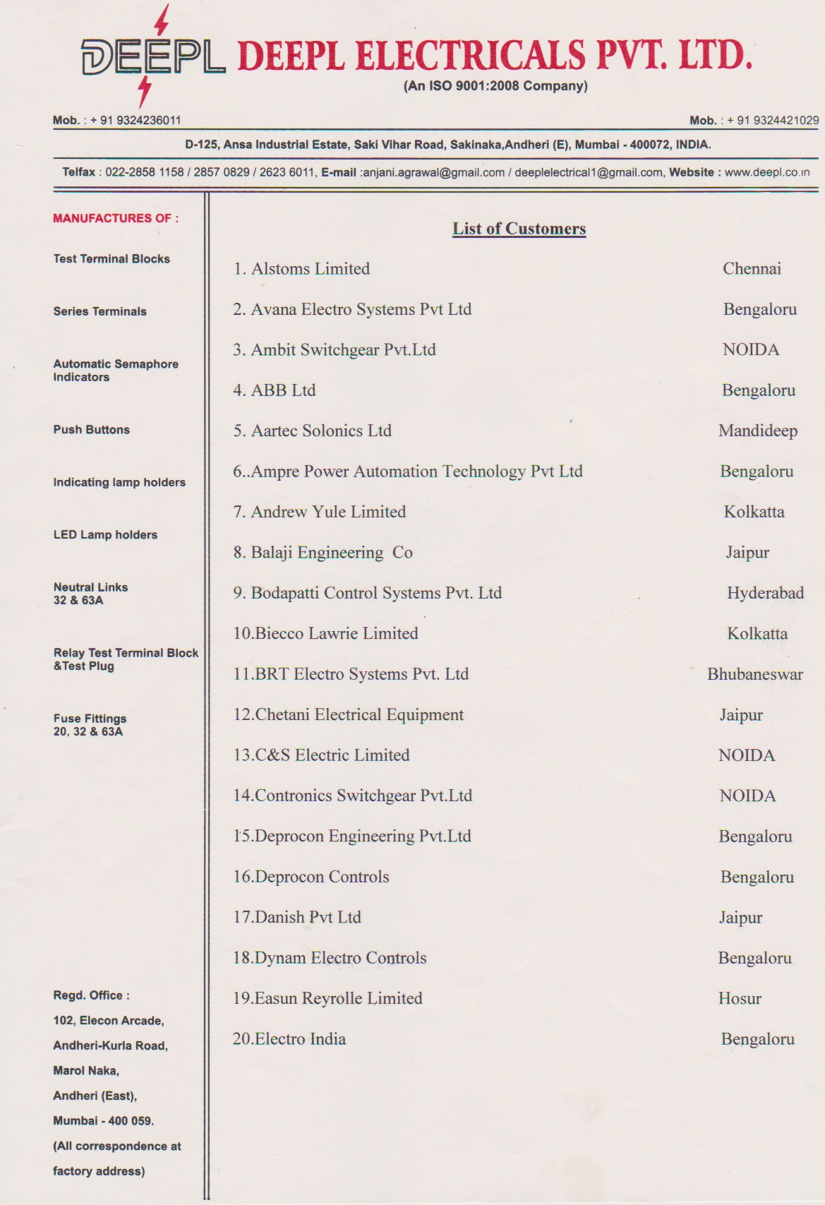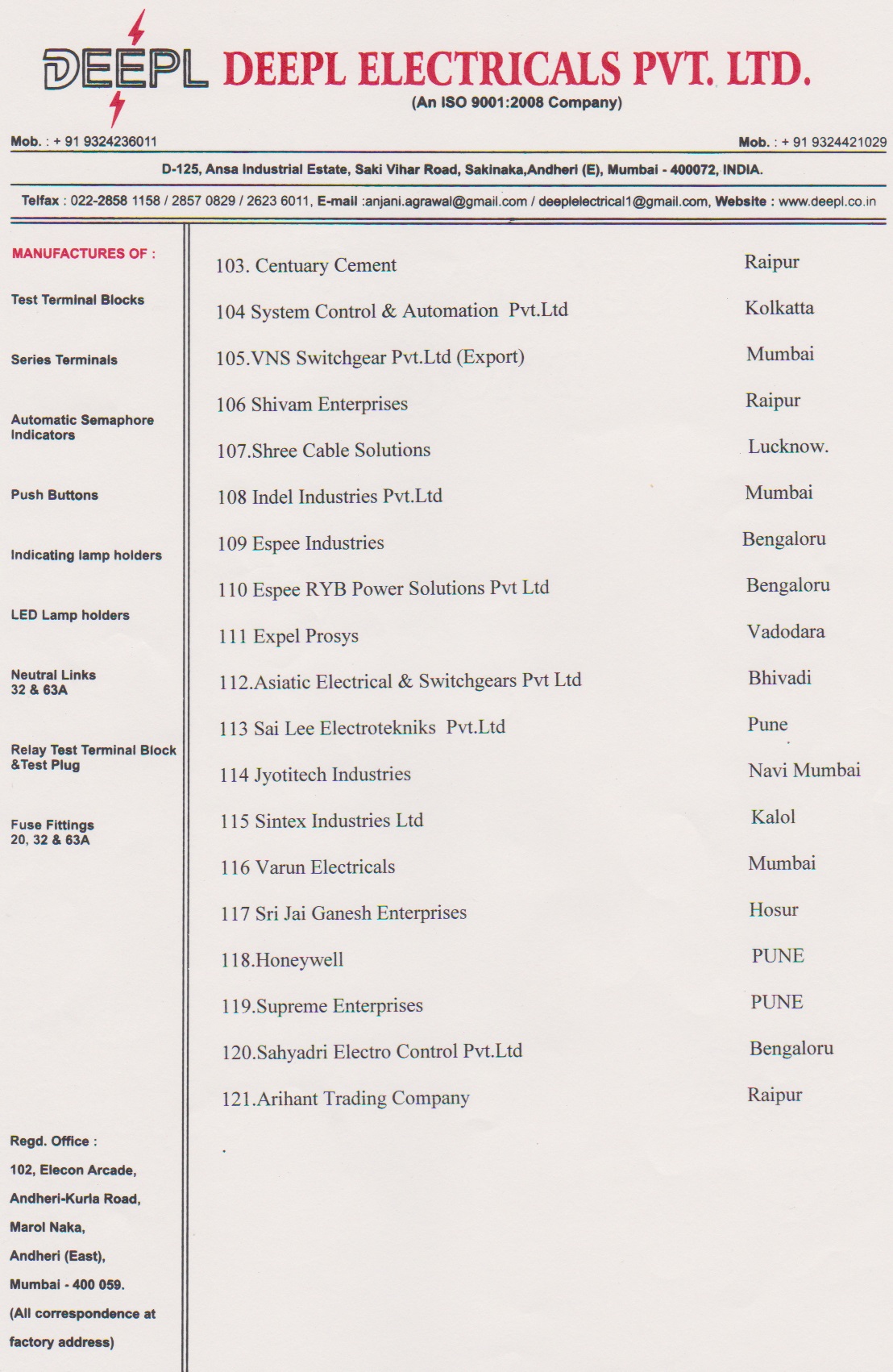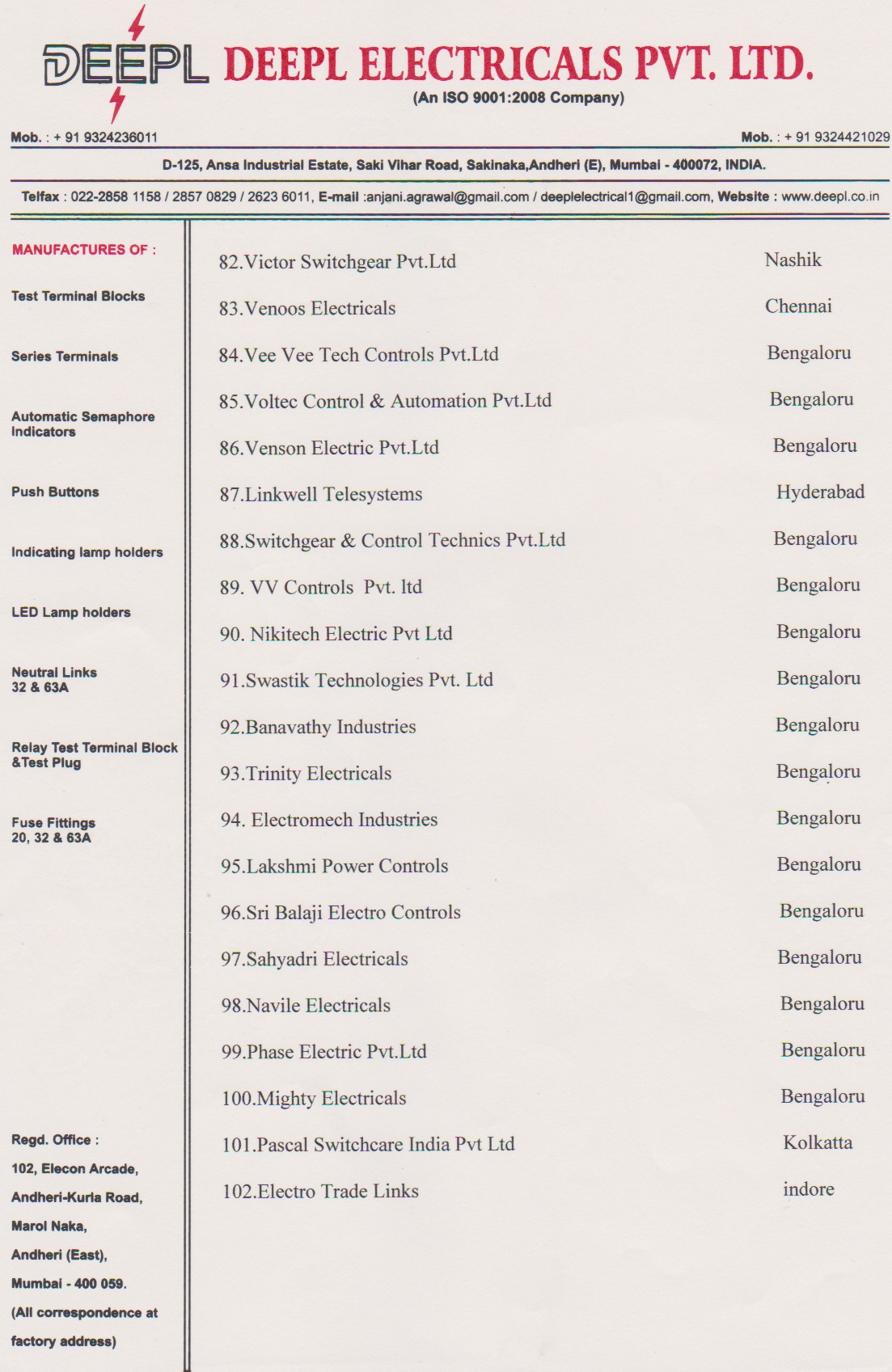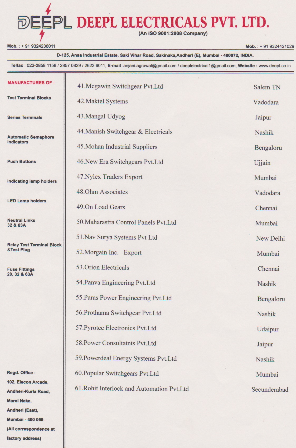 All our components are type tested in IDEMI Mumbai, a Government of India Society. The factory is observing strict quality systems and assembly and tesing of some of the critical components are done in air-conditioned room, free of dust.