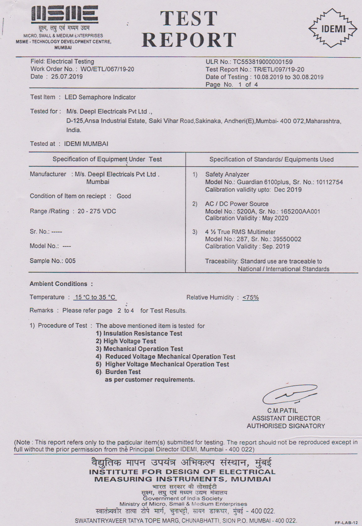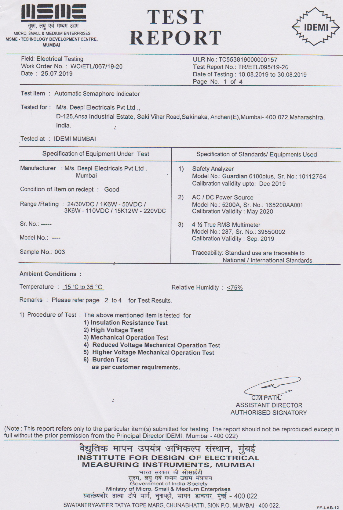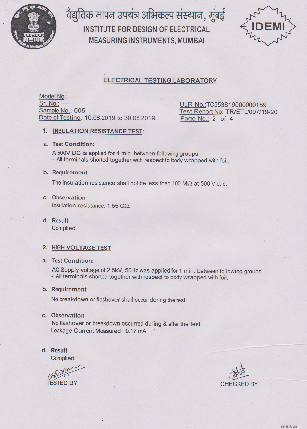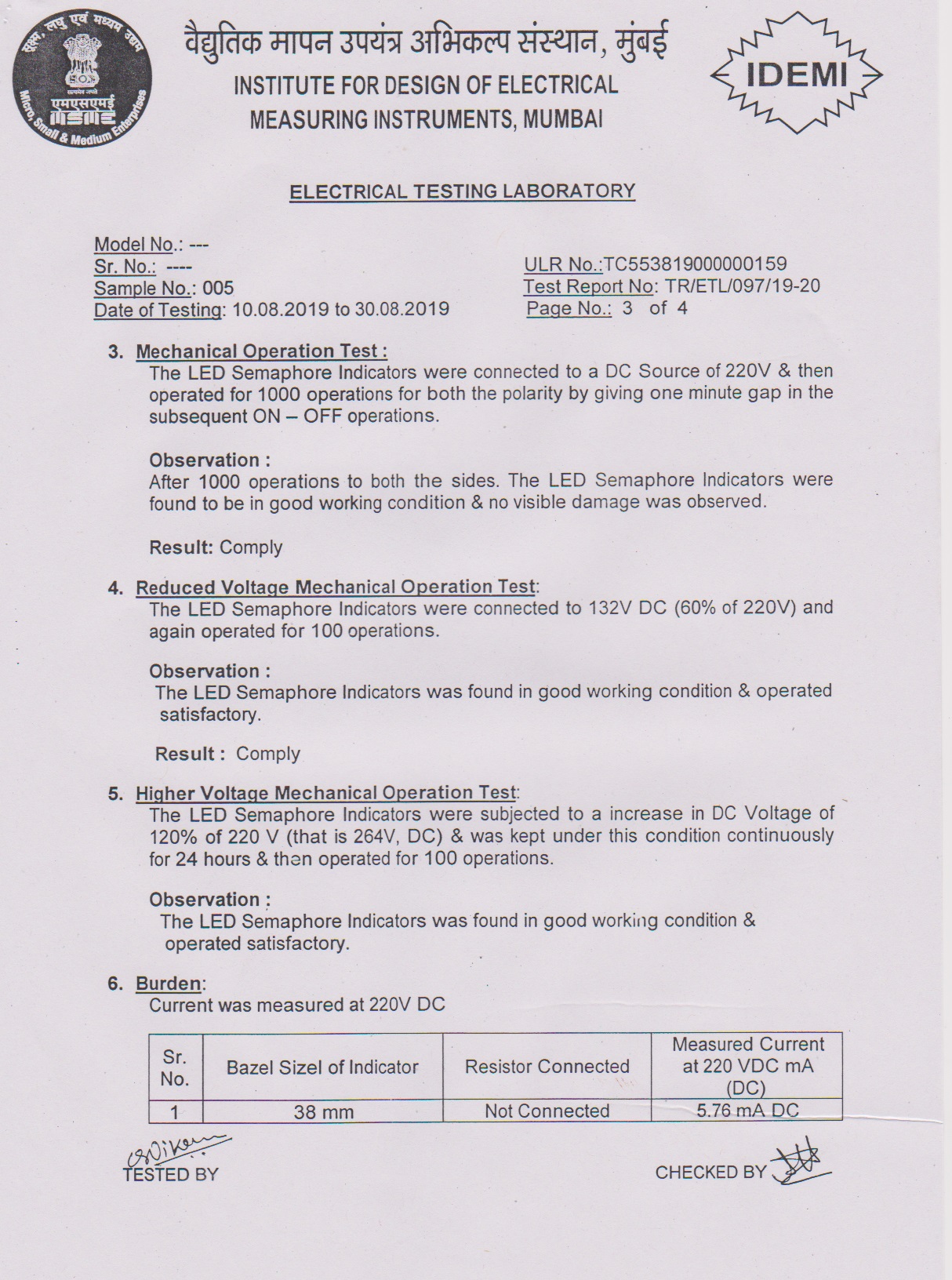 - Type Tested as per IS-3231 - 1965 at IDEMI Bombay.