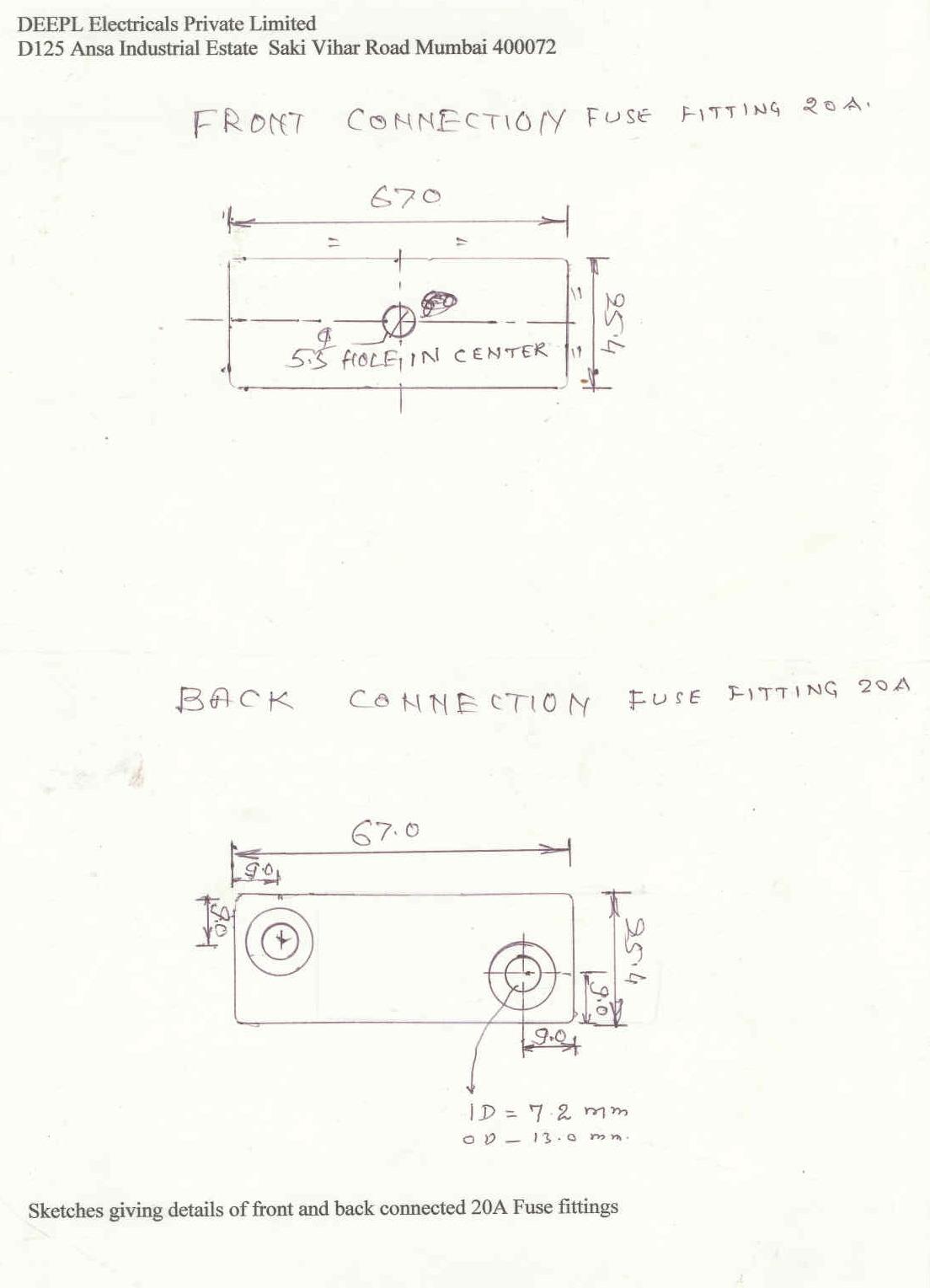 DEEPL moulded fuse fitting type DEEPL20, DEEPL32 & DEEPL63 are of 20A, 23A & 63A, 500V rating only. They are available for front connection from two ends and for back connection or bus bar mounting.